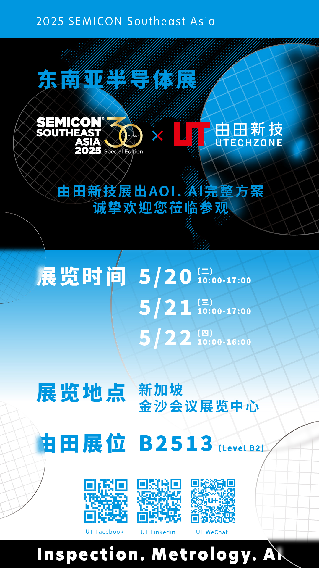 2025 Semicon SEA (5/20~22),由田摊位号 B2513,欢迎莅临参观!