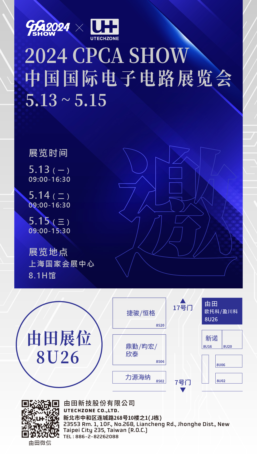 2024 CPCA SHOW 中国国际电子电路展览会 (5/13~15),由田摊位号 8U26,欢迎莅临参观!