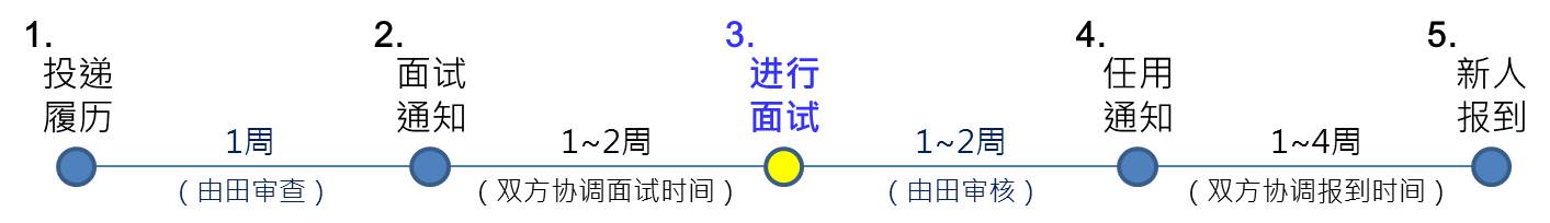 从您投递履历后,将进入履历审核阶段,若您是资格符合的求职者,您将会收到面试通知,由田新技人资单位会以电话及E-mail方式联系,审核作业时间大约1 ~2周,而不符合资格之求职者则不另行通知。