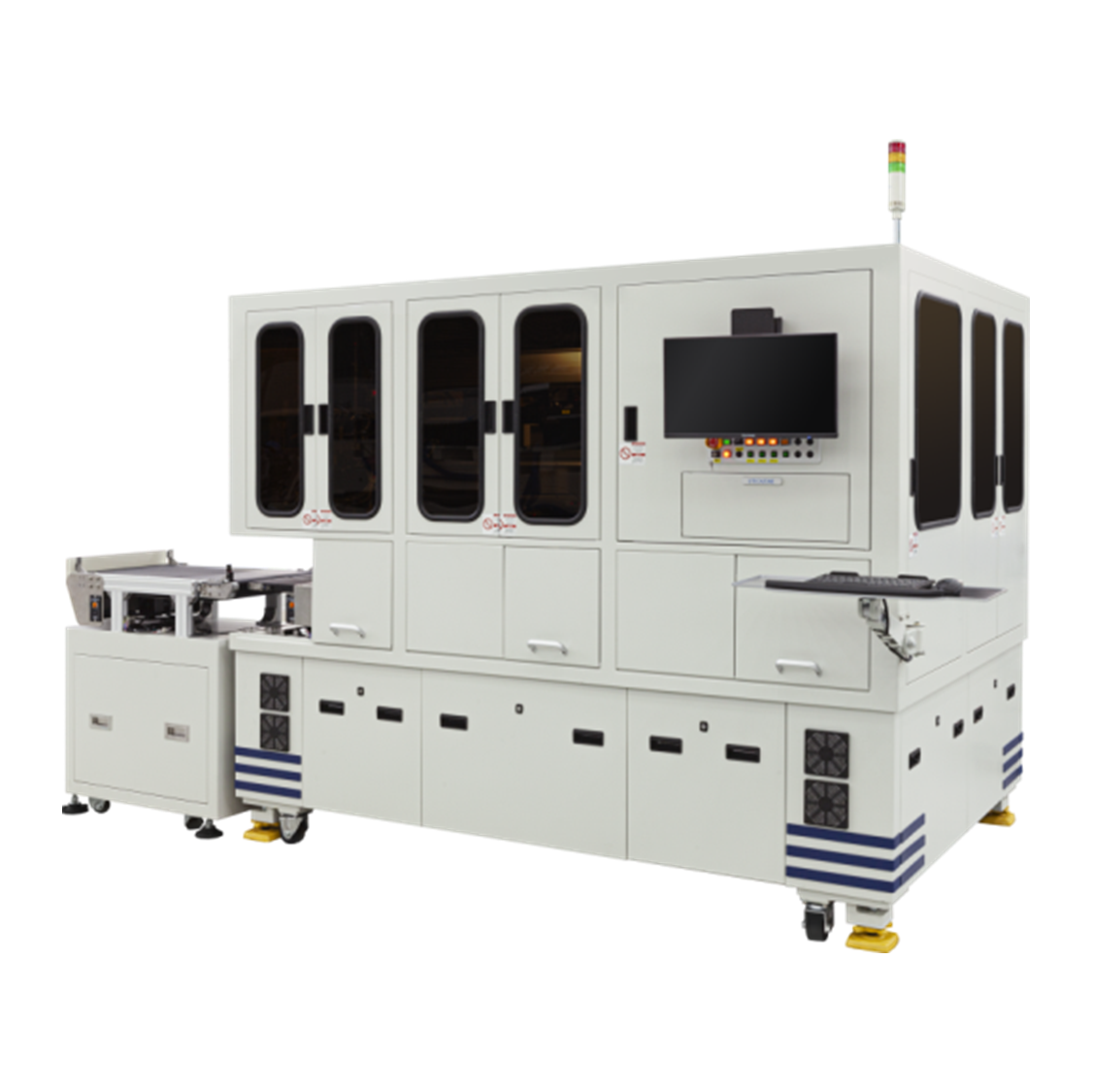 一机多功检量测复合机,同时兼具3D量测、短距离量测及涨缩量测功能,并提供AI自动缺陷分类、复判;外观检测拥有最小检验能力15um,是极具成本效益之检量测设备。