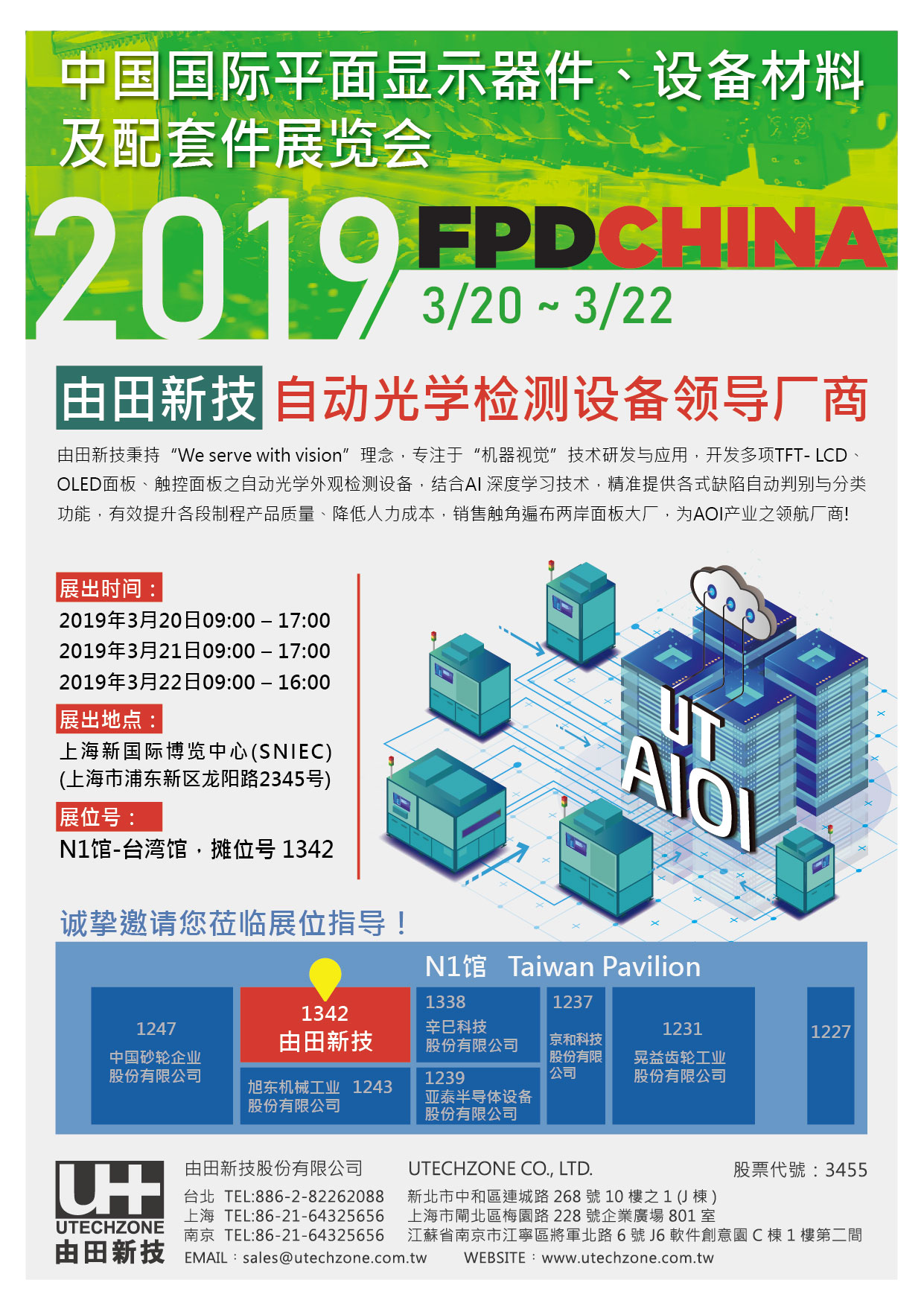 FPD China 2019, Utechzone Booth No. Hall N1, 1342