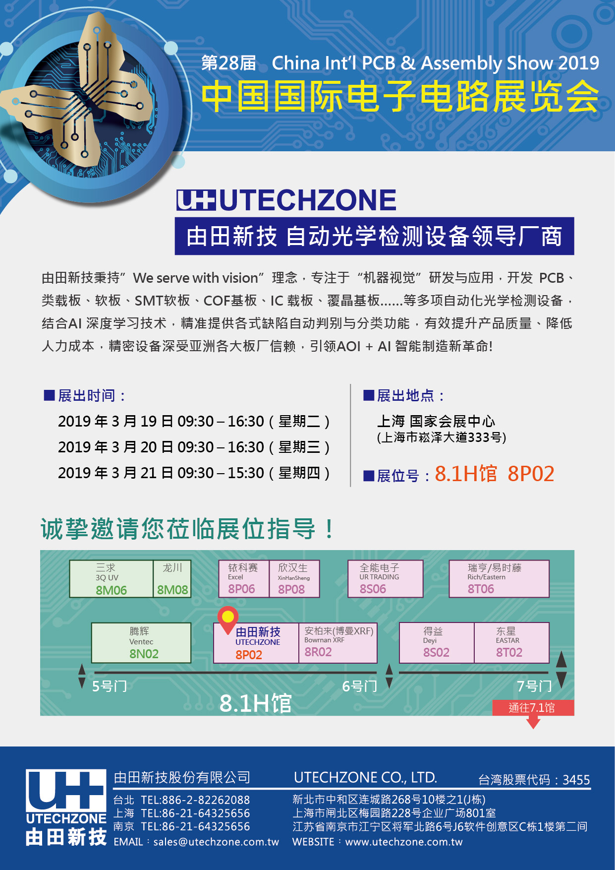 CPCA SHOW 2019, Utechzone Booth No. Hall 8.1, 8P02