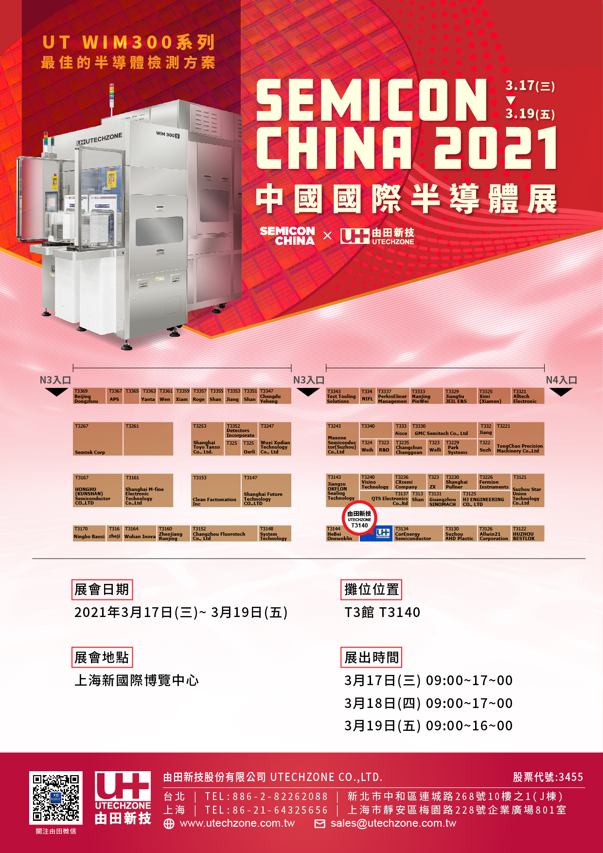 2021 Semicon China, Utechzone Booth No. T3140 !