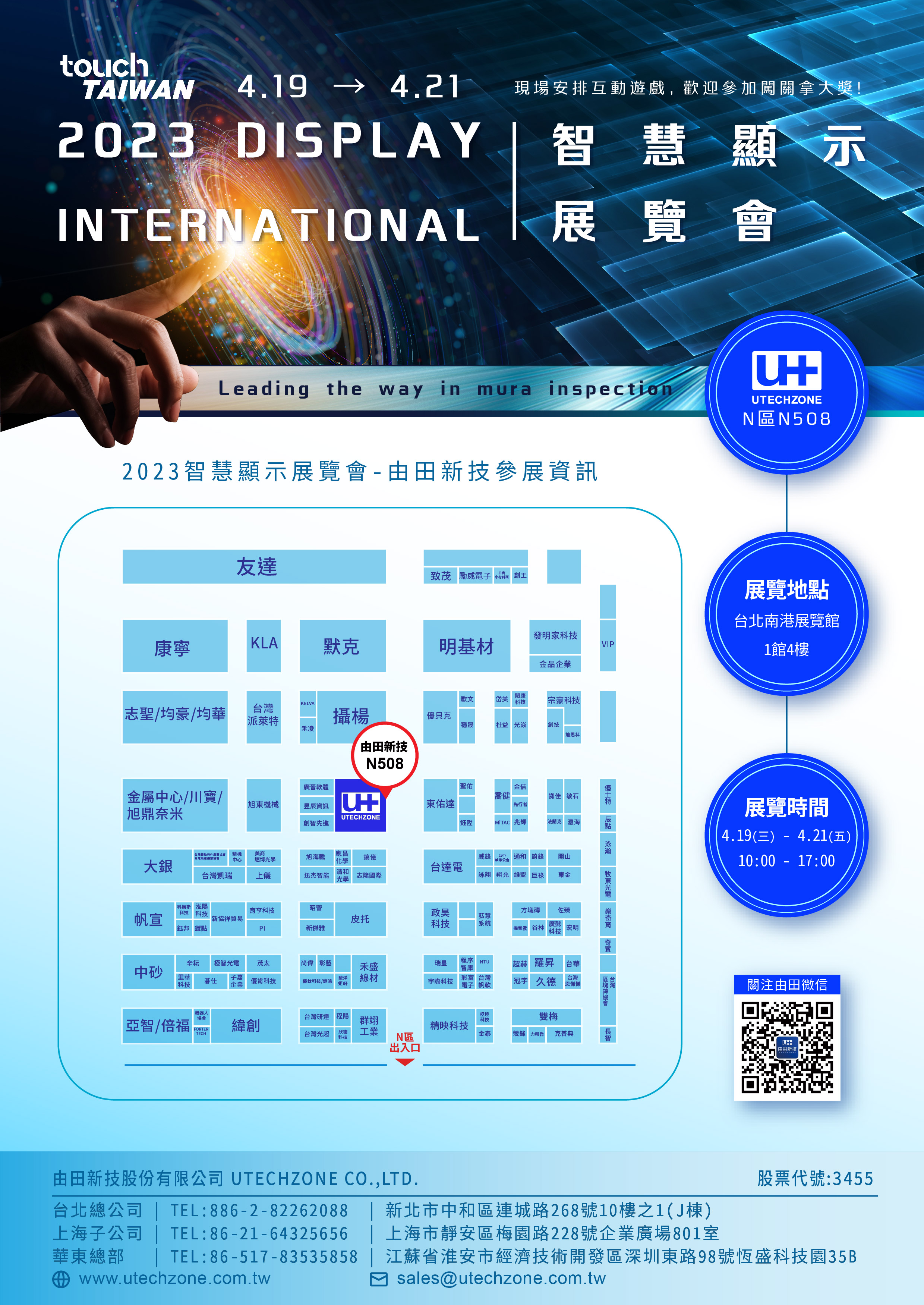 2023 Touch Taiwan Display (4/19~21), Utechzone Booth No. N508