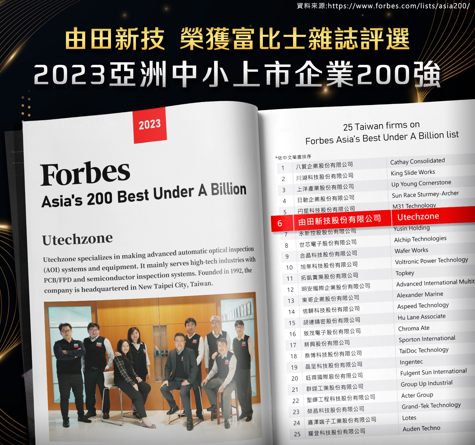 Utechzone was honored with 2023 Forbes Asia’s 200 Best Under A Billion