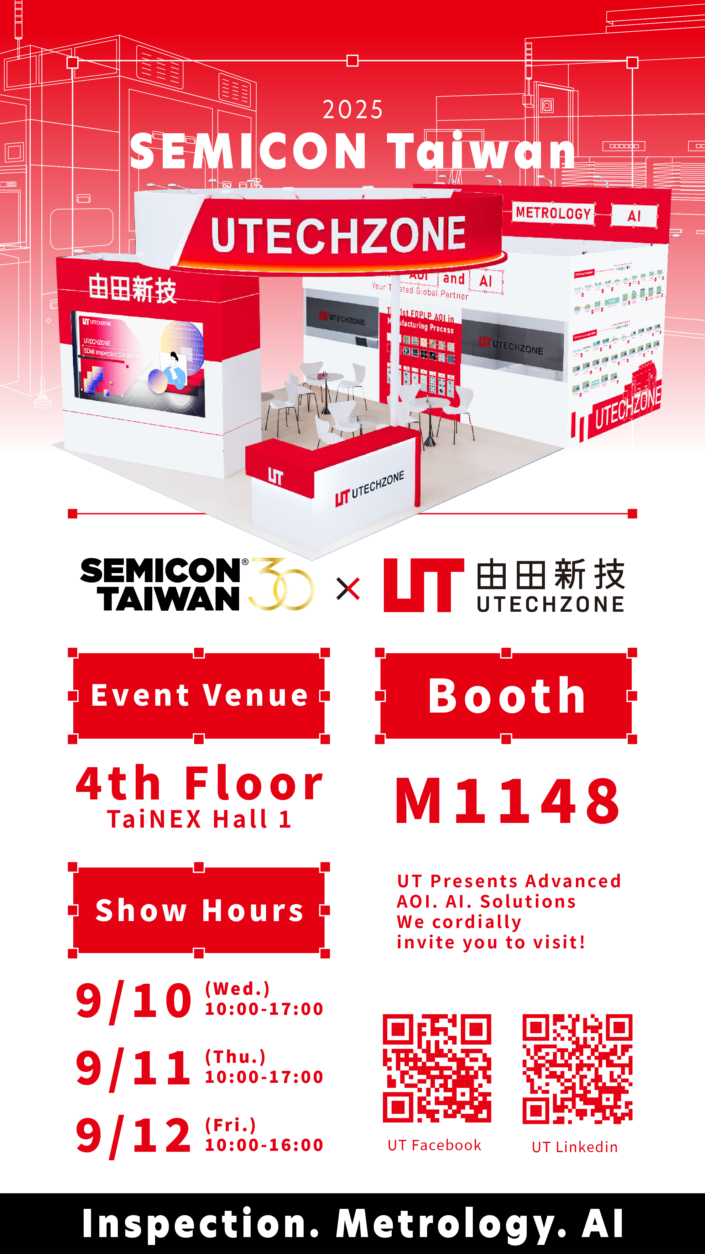 2025 Semicon Taiwan (9/10~12), Utechzone Booth No. M1148!