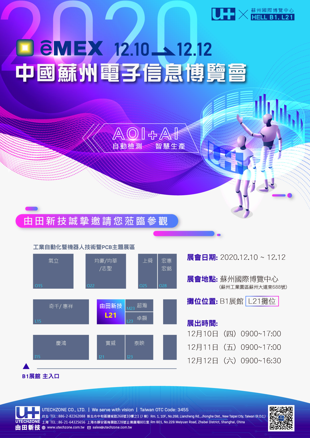 2020 中國蘇州電子信息博覽會,由田攤位號 L21,歡迎蒞臨參觀!